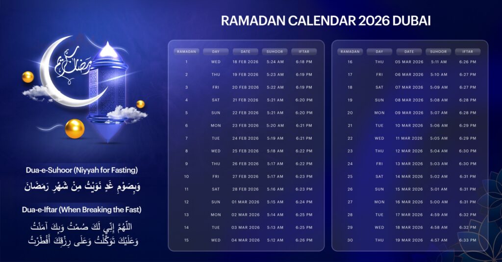 If you are searching for the most accurate Ramadan calendar 2026 Dubai, this complete guide provides daily Sehri and Iftar timings, prayer schedule updates, and everything you need to observe Ramadan in Dubai in 2026.